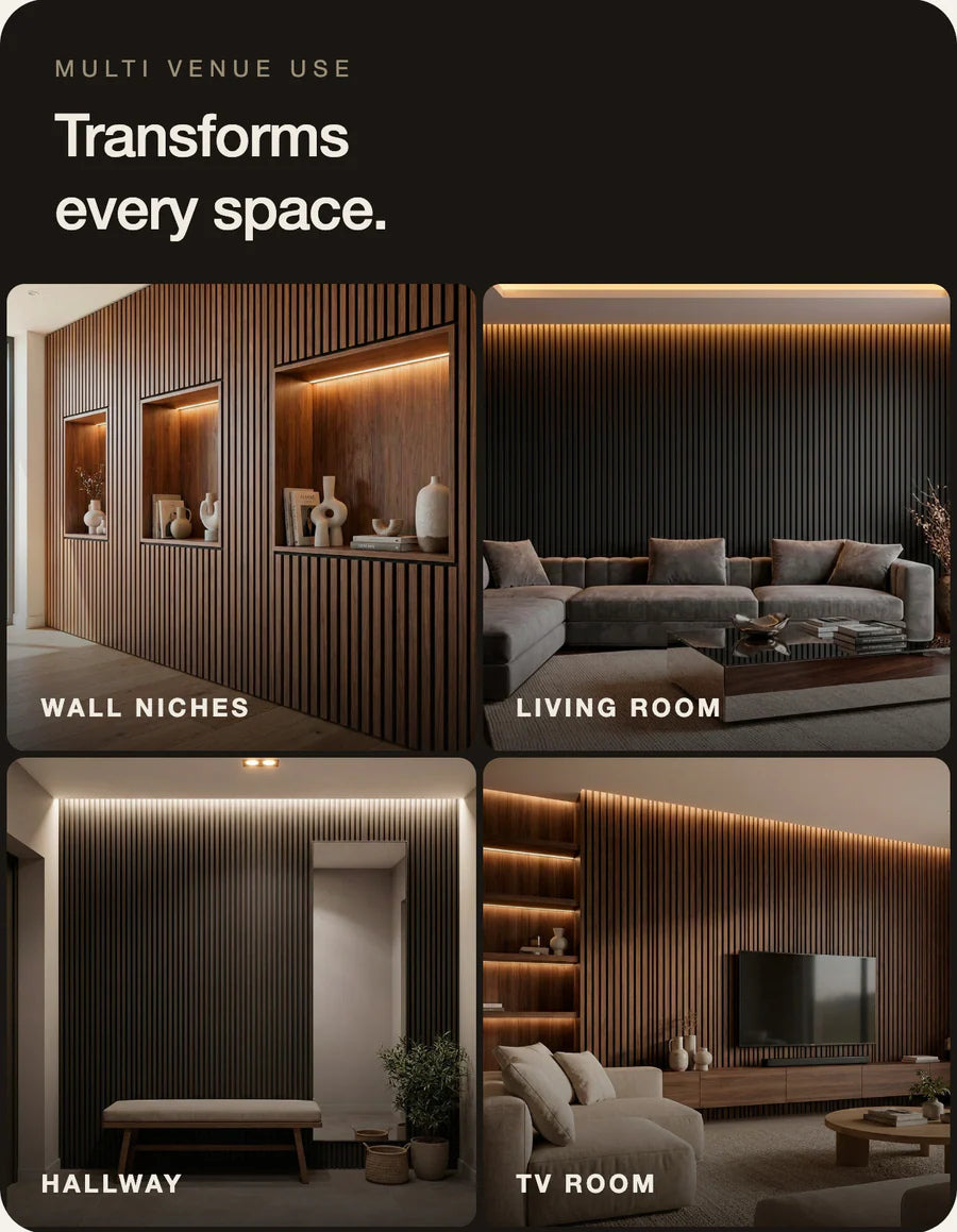 Verleihen Sie jedem Raum Eleganz und Komfort mit unseren vielseitigen Lamellenpaneelen – die ideale Option für alle, die Design und Funktionalität verbinden möchten.